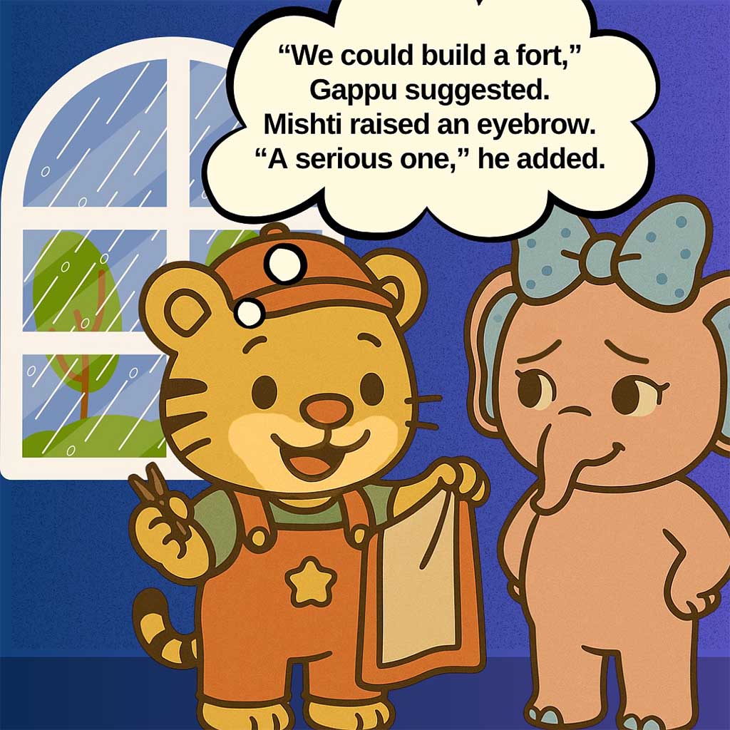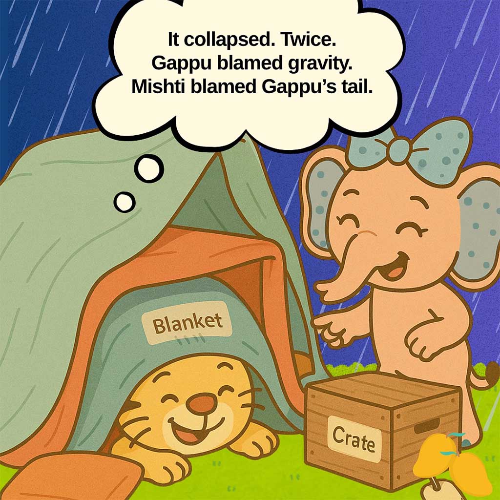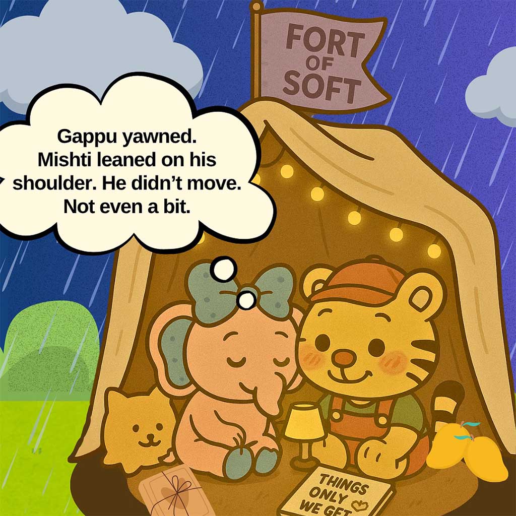 Rainy Days Ruins Plans Reading time:0 mins read Post published:June 14, 2025 Post category:Their Stories Spread the cuteness You Might Also Like When Gappu First Saw Mishti June 12, 2025 It All Started With A Mango June 12, 2025 Gappu Had an Idea June 23, 2025 Leave a Reply Cancel replyCommentEnter your name or username to comment Enter your email address to comment Enter your website URL (optional) Save my name, email, and website in this browser for the next time I comment.